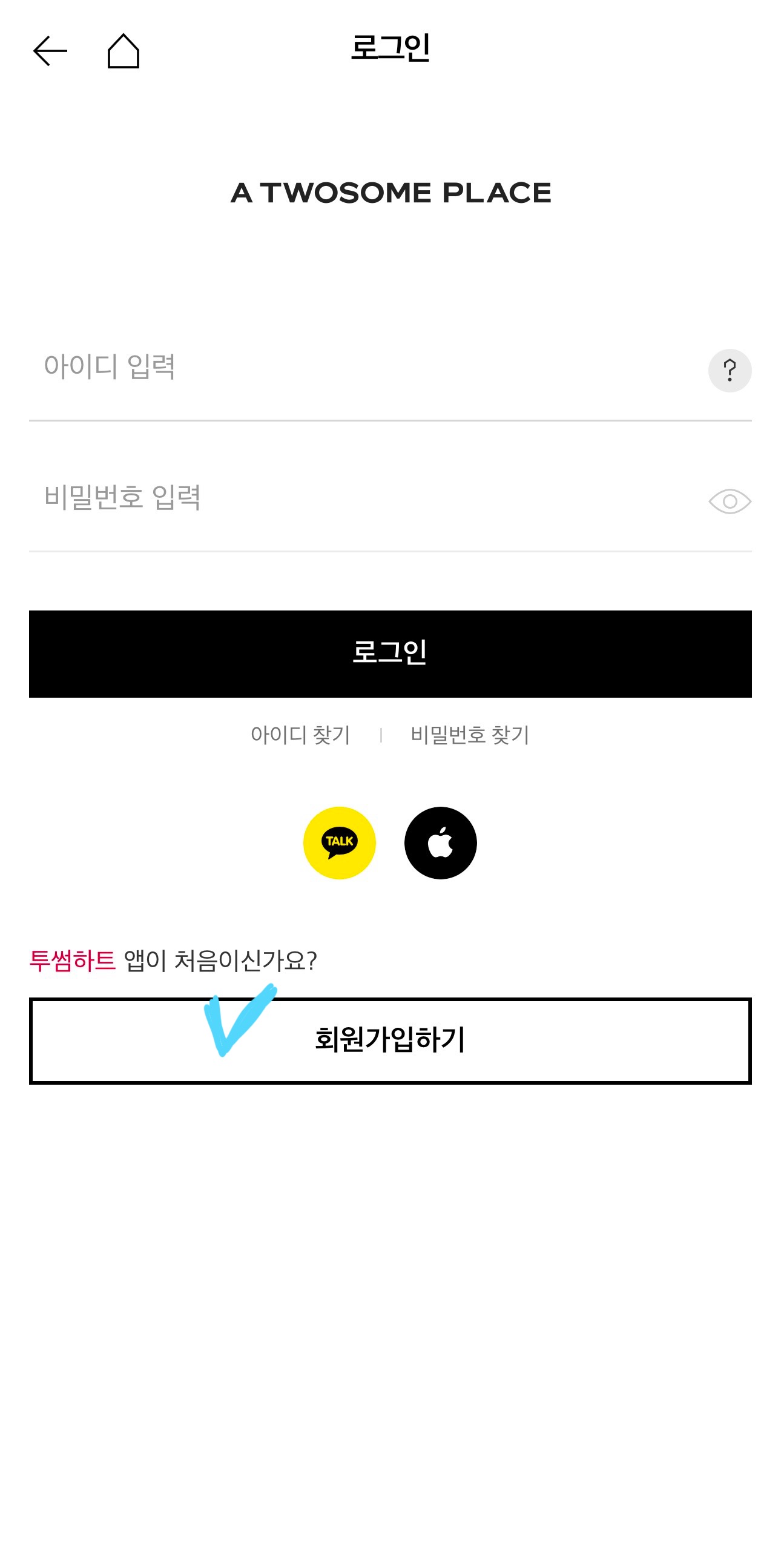2. 투썸 하트 앱 회원가입을 진행합니다.