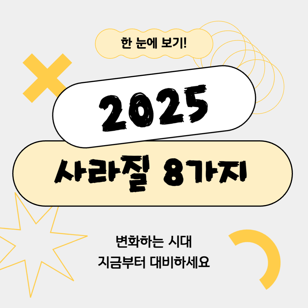 기술과 정책의 변화는 우리의 일상에 크고 작은 영향을 미칩니다. 2025년은 익숙했던 것들이 사라지거나 전환되는 한 해가 될 전망인데요! 오늘은 2025년부터 사라지거나 축소될 8가지와 이에 따른 영향, 우리가 준비해야 할 것들에 대해 알려드리겠습니다.